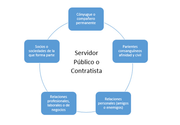 - Relación contractual o de negocios: que alguno de los interesados en la actuación administrativa sea representante, apoderado, dependiente, mandatario o administrador de los negocios del servidor público.